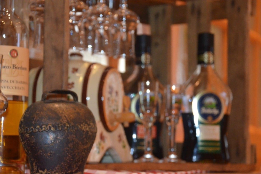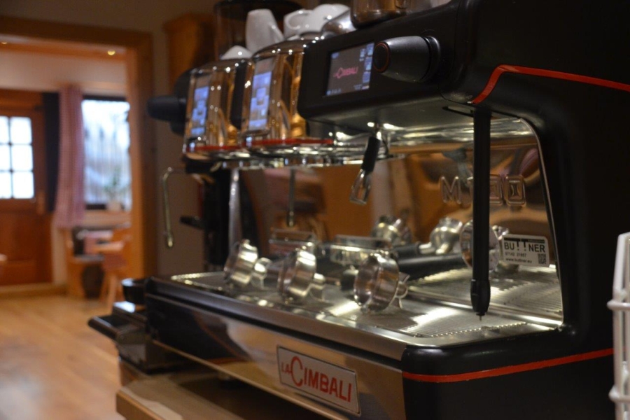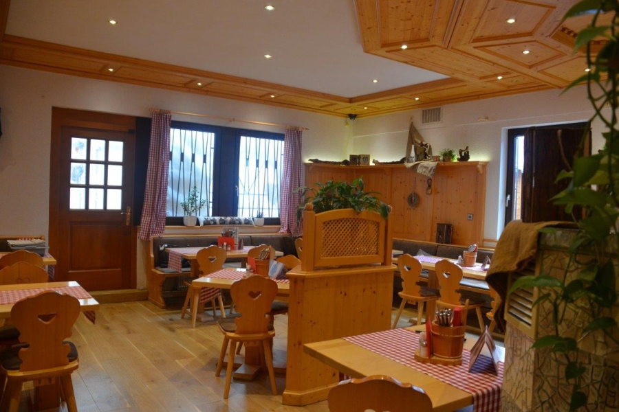 In unserem Gastraum finden 40 Gäste Platz. Hier finden Sie die Bar und das Salatbuffet.